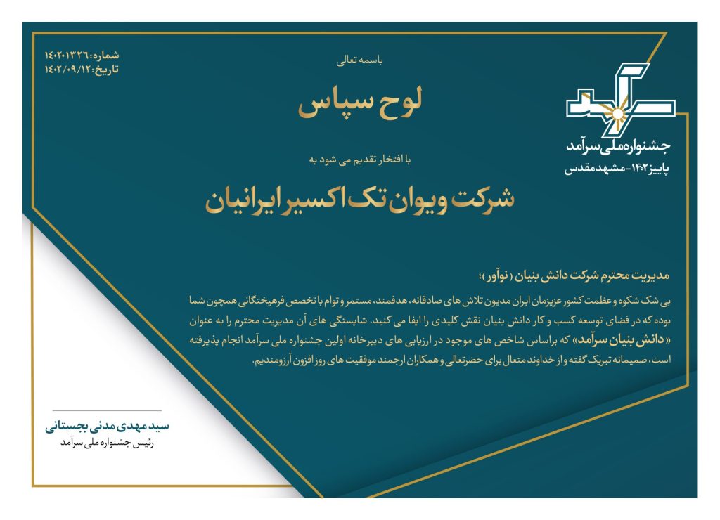 معرفی برگزیدگان اولین دوره جشنواره ملی سرآمد (سال ۱۴۰۲)